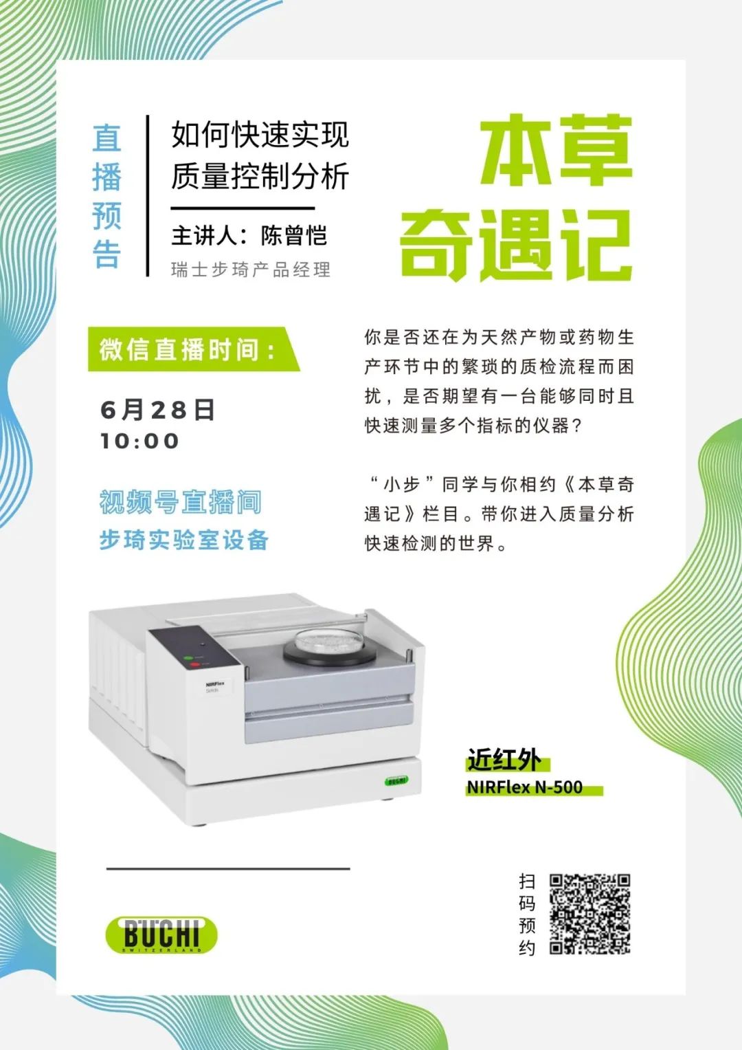 是否还在为天然产物或药物生产环节中的繁琐的质检流程而困扰,是否期望有一台能够同时且快速测量多个指标的仪器?相约《本草奇遇记》栏目,带你进入质量分析快速检测的世界。6月28日 10:00步琦视频号直播间等你!