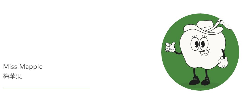 梅苹果小姐是该团队中经验最丰富的食品侦探。她依稀记得,她是在追捕一只试图吃掉她妹妹部分身体的黄蜂时,对侦探调查事业产生了兴趣。就像葡萄酒一样,梅苹果小姐的头脑似乎也随着年龄的增长而越来越好。她在使用如她一样经典的参考方法时特别自信。梅苹果小姐非常喜欢甜食,她是所有水果类制品无可争议的专家,如果汁、酱汁和水果派,甚至包括苹果派。