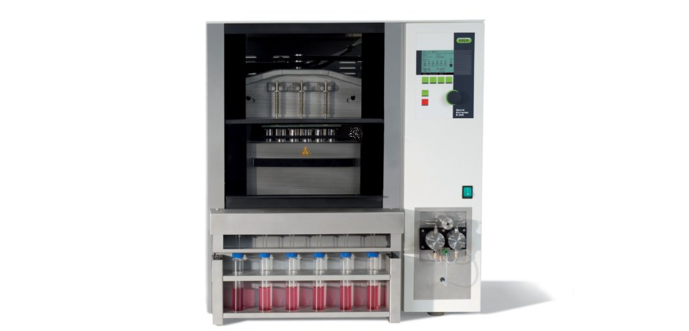 萃取中药原料往往需要使用大量的溶剂,因此在进一步的处理前需要浓缩萃取液。步琦作为旋转蒸发仪的发明者,在真空蒸发解决方案上已经累积了超过 60 年的经验,深知浓缩时,萃取液的量和性质决定了所需要的工艺和参数。因此,我们不仅提供实验室级和工业级的旋转蒸发仪,还有多位平行浓缩仪,可以满足大量萃取液的浓缩,或者纯化分离后的多样品平行浓缩。