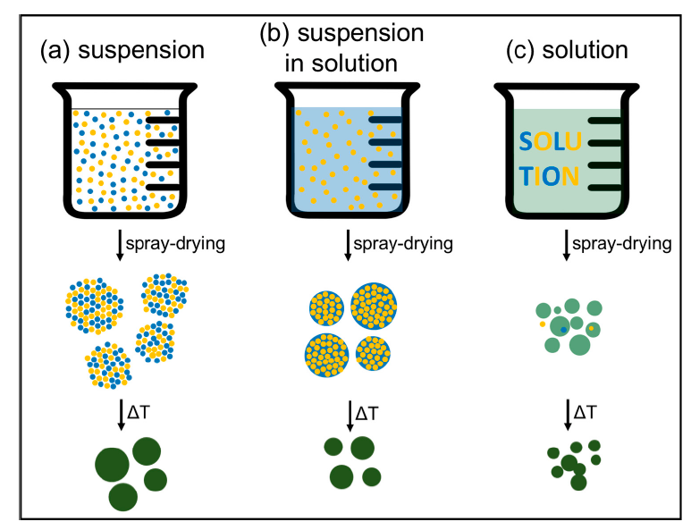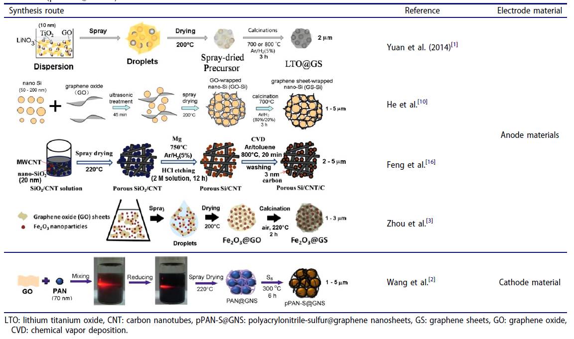 在这篇文章中,概述了迅速增加的文献研究数量,包括溶液的喷雾干燥和悬浮液的喷雾干燥。并特别关注待喷雾干燥的溶液/悬浮液配方的化学方面;也考虑了喷雾干燥前驱体的后处理以及由此产生的颗粒形态。在表格中引用了 300 多种出版,其中条目根据最终化合物组成、起始材料、碳来源等列出。