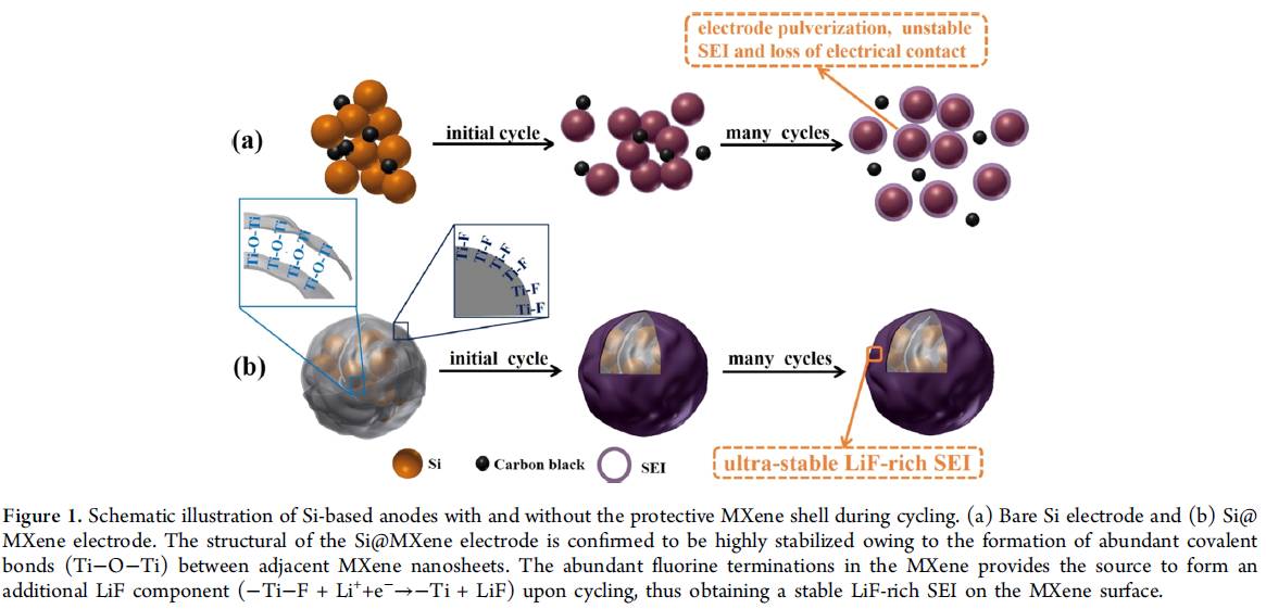 ACS Appl. Mater. Interfaces (2020): MXene Frameworks Promote the Growth and Stability of LiF-Rich Solid−Electrolyte Interphases on Silicon Nanoparticle Bundles