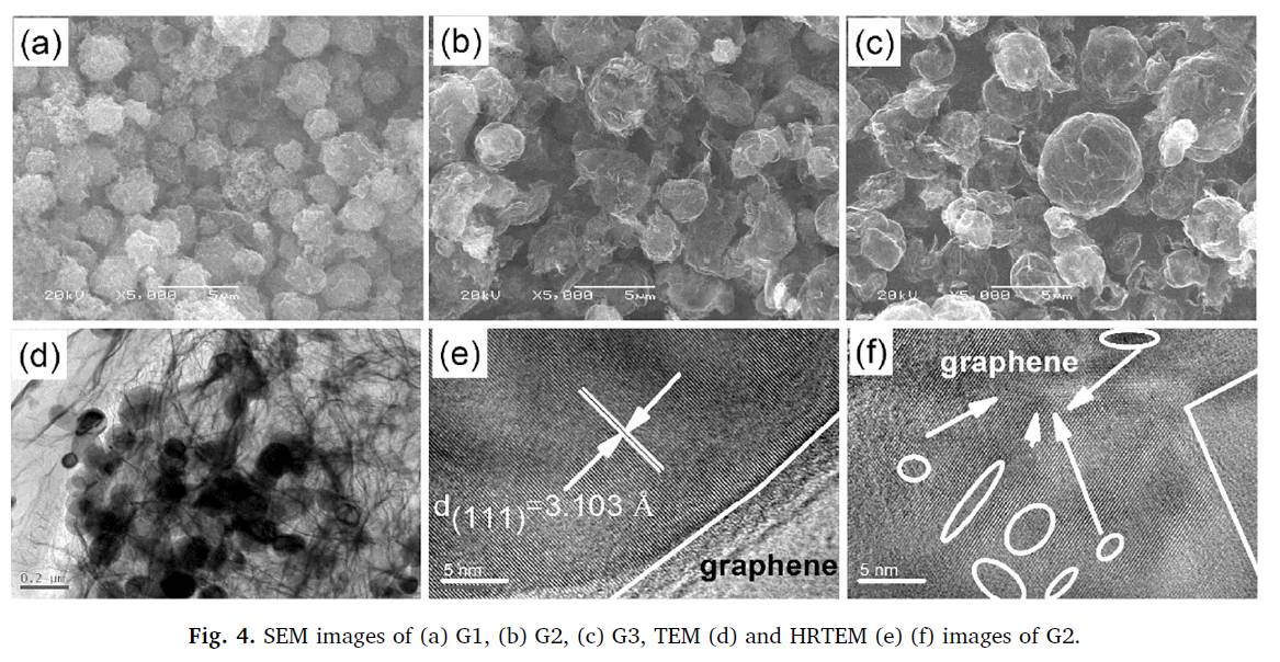 SEM 和 TEM 结果表明,硅@石墨烯粉末为微米级别的球形颗粒,石墨烯片包裹了纳米硅颗粒。硅@石墨烯复合材料显示出优良的电化学性能,当硅和氧化石墨烯的质量比在 1:4 时,可表现出最佳的电化学性能,在100 mAh g-1 时具有 1298.1 mAh g-1 的高初始充电容量。此外,该样品表现出良好的倍率性能,这表明它是一种很有前途的锂离子电池负极材料。