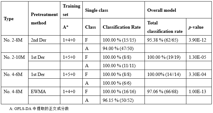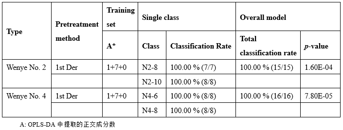 表4 基于 OPLS-DA 建立不同类型椰子水品种的最优模型结果: