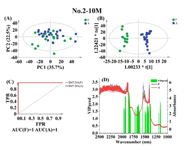 通过结合化学计量学方法对上述样品的存储时间建立模型,各类椰子水的最优模型和结果分别由 表2 和 图1 到 图4 所示: