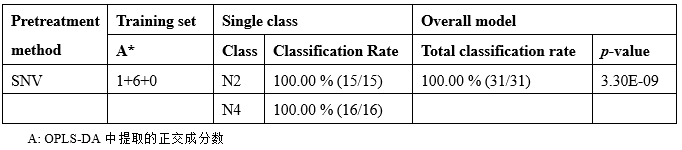 表2 基于 OPLS-DA 建立不同类型椰子水的存储时间最优模型结果: