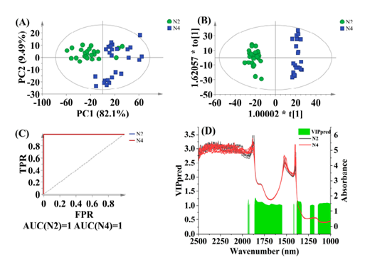在其它指标测定结束后,将样品水浴平衡至室温,然后在同一天用 NIRFlex N500 光纤探头测量加热至 35 ℃ 的 1mL 样品 3 次,每次测量扫描 32 次,光谱范围10000 – 4000 cm-1,所得光谱用于后续建模分析。