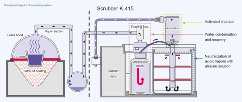 湿法灰化系统由湿法消解仪 B-440 和尾气吸收仪 K-415 组成(如上图1),可以根据药品质量控制中的不同具体方法的选择可能取决于分析的目的、每天的样品量以及遵守官方标准方法的需要,轻松有效地进行灰化实验。