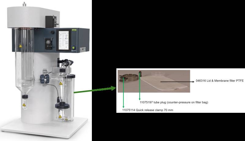 ▲ 步琦喷雾干燥仪 S-300 配置的 PTFE 出口过滤袋