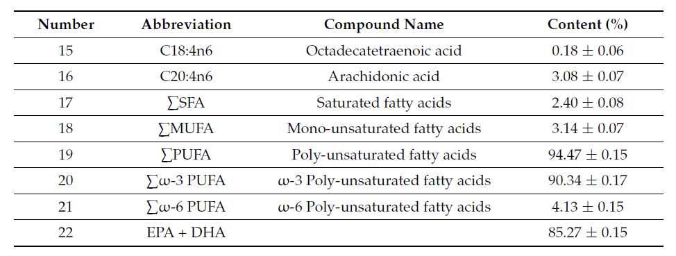 表7. 纯化 ω-3 脂肪酸乙酯的脂肪酸组成