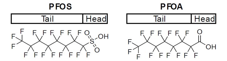 ▲ 图1:全氟辛烷磺酸(PFOS)和全氟辛酸(PFOA)的化学结构式
