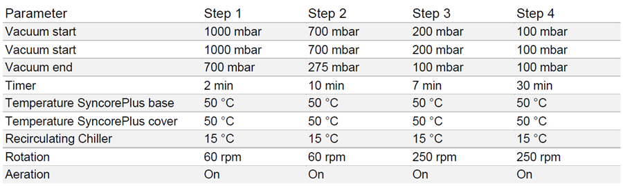 表1:使用 Lyovapor L-200 Pro 进行冷冻干燥的设置。