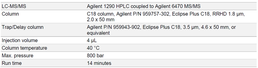 表2:通过液相色谱 - 串联质谱法进行定量分析。