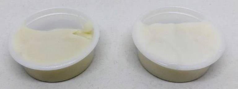 ▲ 图7. 对未脱色(左)和脱色(右)3%配方的短毛栎提取物进行优化活性炭脱色的结果
