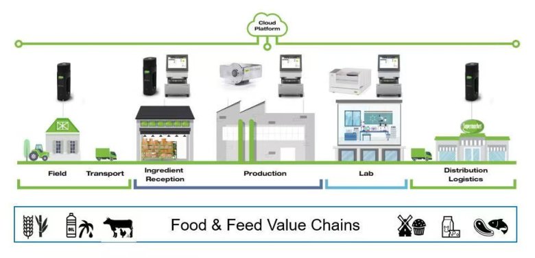 NeoSpectra 扫描仪——现更名为 BUCHI ProxiScout™——在原料采购阶段发挥着关键作用。它作为一款现场分析仪,可立即检测如水分和蛋白质含量等关键参数的掺假或波动。这些重要数据将直接传送至采购团队,使他们能够及时拒收存在问题的批次,避免不必要的物流和加工成本。当原料到达生产设施后,BUCHI 的其他近红外仪器(如 ProxiMate™、NIR-Online 和 NIRFlex N-500)将在生产的各个阶段继续开展分析工作。通过 NeoSpectra 云端平台 对所有分析数据进行同步,确保每一阶段获取的洞察能够无缝地支持后续决策,形成一个一致、协同的质量保证体系。