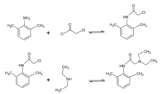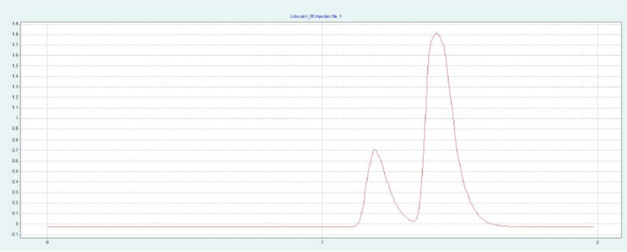 利多卡因(L),化学式为2-二乙胺- N -(2,6-二甲基苯基)乙酰胺,是一种用作局部麻醉剂和抗心律失常药物的药物。它起到钠通道阻滞剂的作用。利多卡因可以两步合成(见图3)。在第一步中,2,6 二甲醚(X)的氨基被酰化。在第二步中,中间产物(IP)通过与二甲胺的亲核取代转化为利多卡因。因此,需要两个纯化步骤。色谱柱筛选的结果如 图2 所示。在改性剂甲醇中始终加入 20mm 氨水作为碱性添加剂。