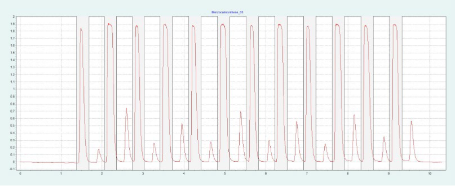 筛选运行是完全自动开始的。使用流量控制单元将流量设置为每通道3ml /min,并平衡色谱柱。自动进样(V = 5 μL),开始平行筛选(运行时间= 10 min)。背压调节器设置为150 bar,柱箱加热至32°C。添加剂需要提前被添加到改性剂中。